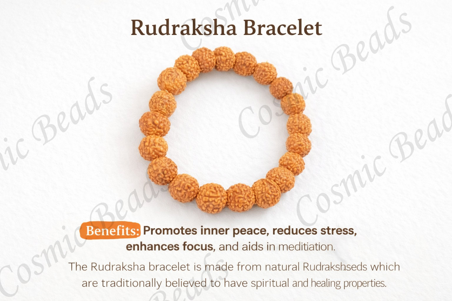 Experience the divine power of nature with the Cosmic Beads Original Rudraksha Bracelet. Made from authentic Rudraksha beads, this sacred bracelet is known for attracting positivity, protection, and spiritual growth. Rudraksha is believed to balance mind and emotions while helping reduce stress and negative energy. Wearing this bracelet daily may support focus, inner peace, confidence, and success in life. Designed for both men and women, it blends spiritual power with a stylish natural look. Simply wear it on your wrist with positive intention to feel its energy. Cosmic Beads ensures genuine quality stones trusted for spiritual wellness and positive living.